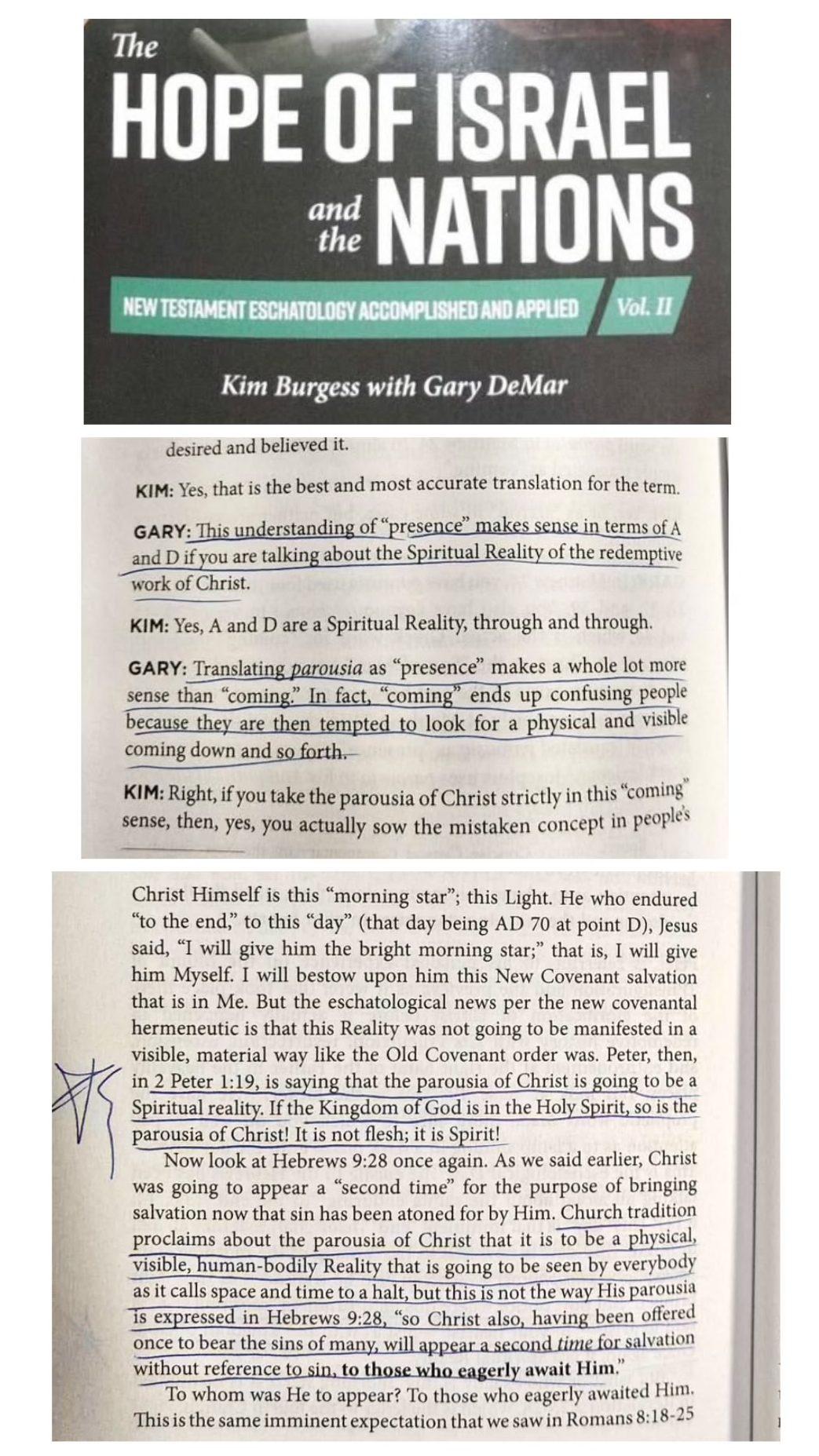 Gary will deny he teaches this, but he pushing the same thing they teach about an alleged (and non-existent) end of the Old Covenant Age” in the first century with a “presence” or “parousia” (coming, arrival) of Christ in Spirit form.