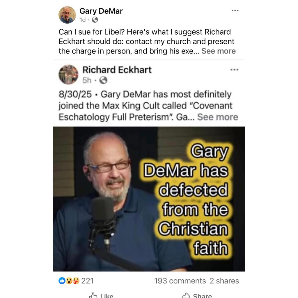 Ya gotta love this one (or maybe not)! Gary DeMar puts the feelers out there for a lawsuit against me, and his faithful admirers took the opportunity for a bash fest. Over 200 comments! This screenshot is very mild compared to some other comments on Gary’s post! The consensus among Gary’s admirers, disciples, and supporters is “Yes! Do it! Sue the pants off Richard!” It’s Beth Stevens’ comment that takes the cake in this screenshot! She says that she’s not my judge, as she goes on to RADICALLY judge me! “Hey! I’m not his judge, but he’s lost physically, he’s lost mentally, and he’s possibly lost spiritually!” Ummmmm! She kinda just played the role of judge. Good old 501c3 Churchianity! At least Kelly Moody came right out and simply said, “I think he’s just lost.” I can respect that. She did use the prayer hands! The prayer hands are sign of a true Christian I heard! If you don’t use prayer hands, you’re not a Christian! I can’t use them, because according to these saved folks, I’m lost. Oh well. Maybe one day.