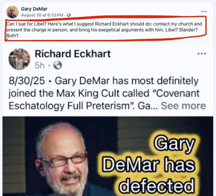 An update on Gary DeMar from American Vision and his desire to bring a lawsuit against me.