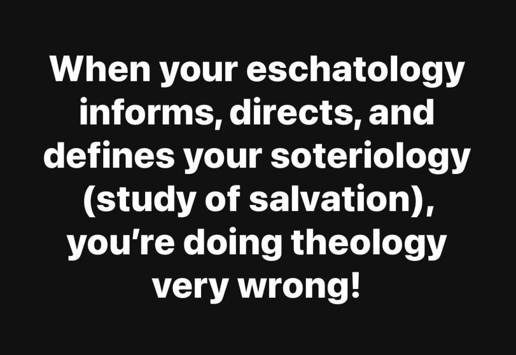 When your eschatology informs, directs, and defines you soteriology (study of salvation), you’re doing theology very wrong!