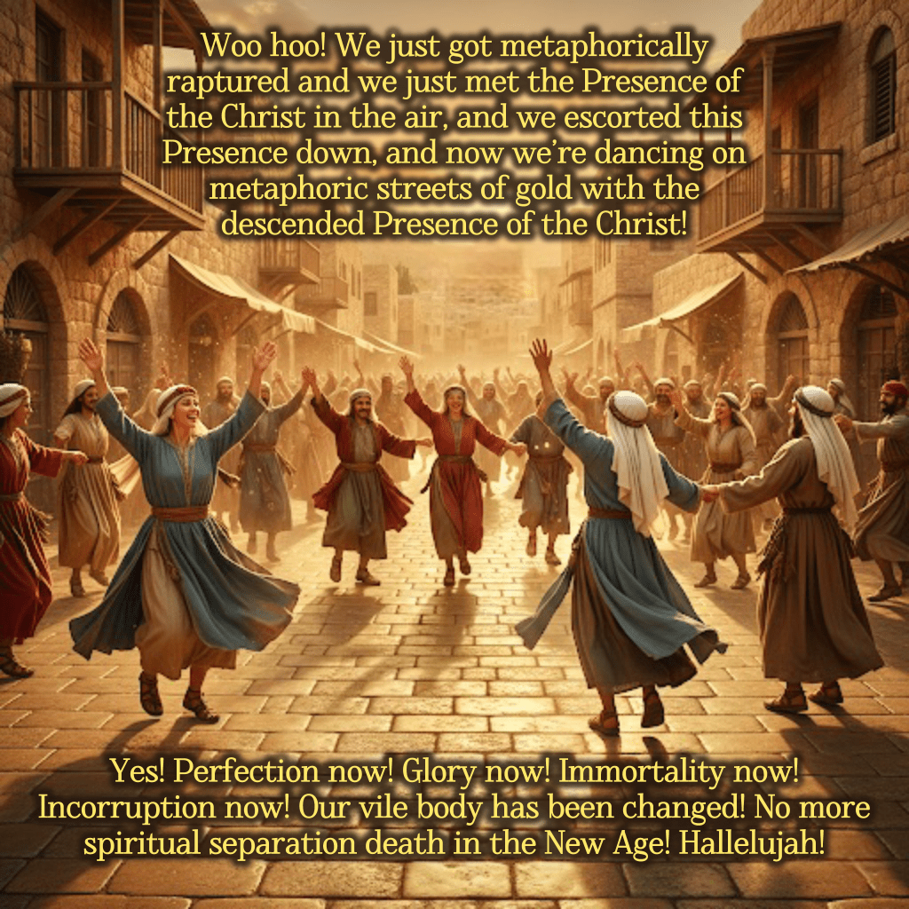 And guess what?! There’s no spiritual seperation death in the New Age that fully came in AD 70! Wow! I mean, who could possibly enter into Old Covenant Age spiritual separation Death that was completely destroyed in AD 70 when the New Age fully arrived! Goosebumps!